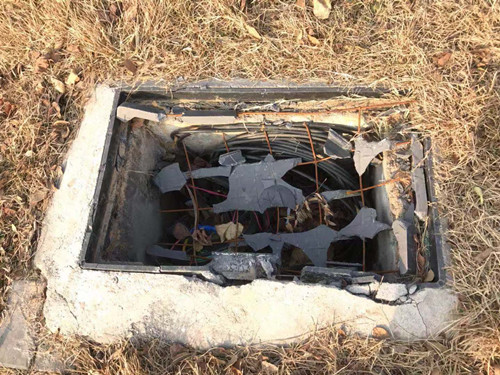 再就是現(xiàn)在很多井蓋廠家為了降低成本,在井蓋里面加上石英砂,石英砂一種很便宜的沙料,它的吸水率是很大的,石英砂與樹脂在融合的過(guò)程中容易產(chǎn)生縫隙,在下雨或者下雪的時(shí)候容易進(jìn)入水蒸氣,冬天凍住,夏天化開,這樣就使井蓋內(nèi)部的間隙就越來(lái)越大,再加上車輛來(lái)回碾壓,就更加容易裂開,下圖的“紙皮井蓋”就是這樣來(lái)的。
