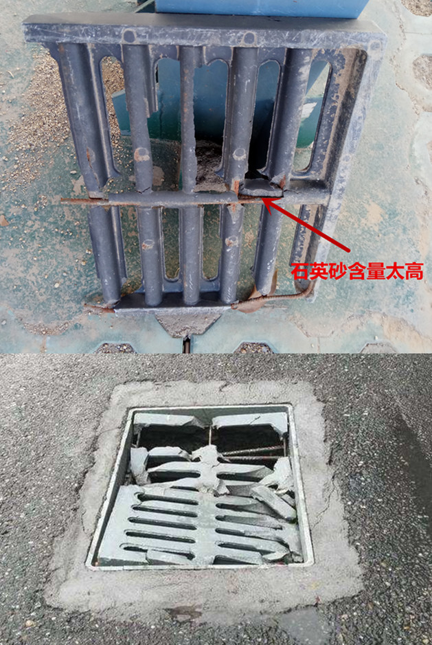 現(xiàn)階段溝蓋板的市場行情是什么樣呢?樹脂溝蓋板分為加砂溝蓋板和不加砂溝蓋板。市面上流通的大部分都是加砂的,加砂的溝蓋板只能走人,溝蓋板在生產(chǎn)過程中添加了石英砂就破壞了樹脂原有的韌性,很多廠家降低成本用低價來取悅客戶,在生產(chǎn)溝蓋板的時候降低樹脂的含量,添加大量的石英砂,結(jié)果就是溝蓋板的承載力也大打折扣,以價格低的優(yōu)勢迅速占領(lǐng)市場,導(dǎo)致路面上看到的溝蓋板大部分都是劣質(zhì)產(chǎn)品。(下圖所示)