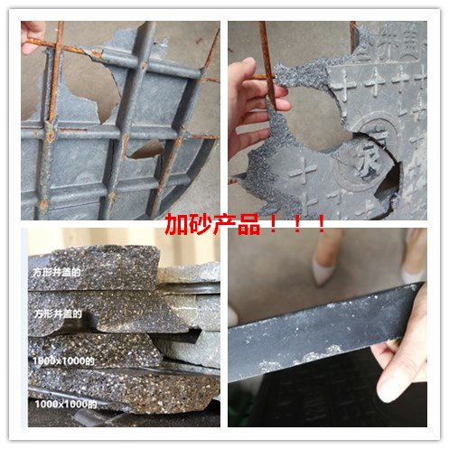 加砂井蓋:加了砂,井蓋重量增加,不按國標(biāo)配比生產(chǎn),面層薄脆,質(zhì)量差。